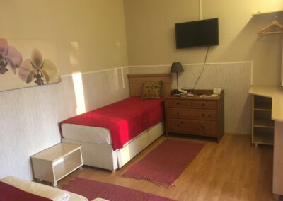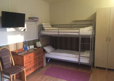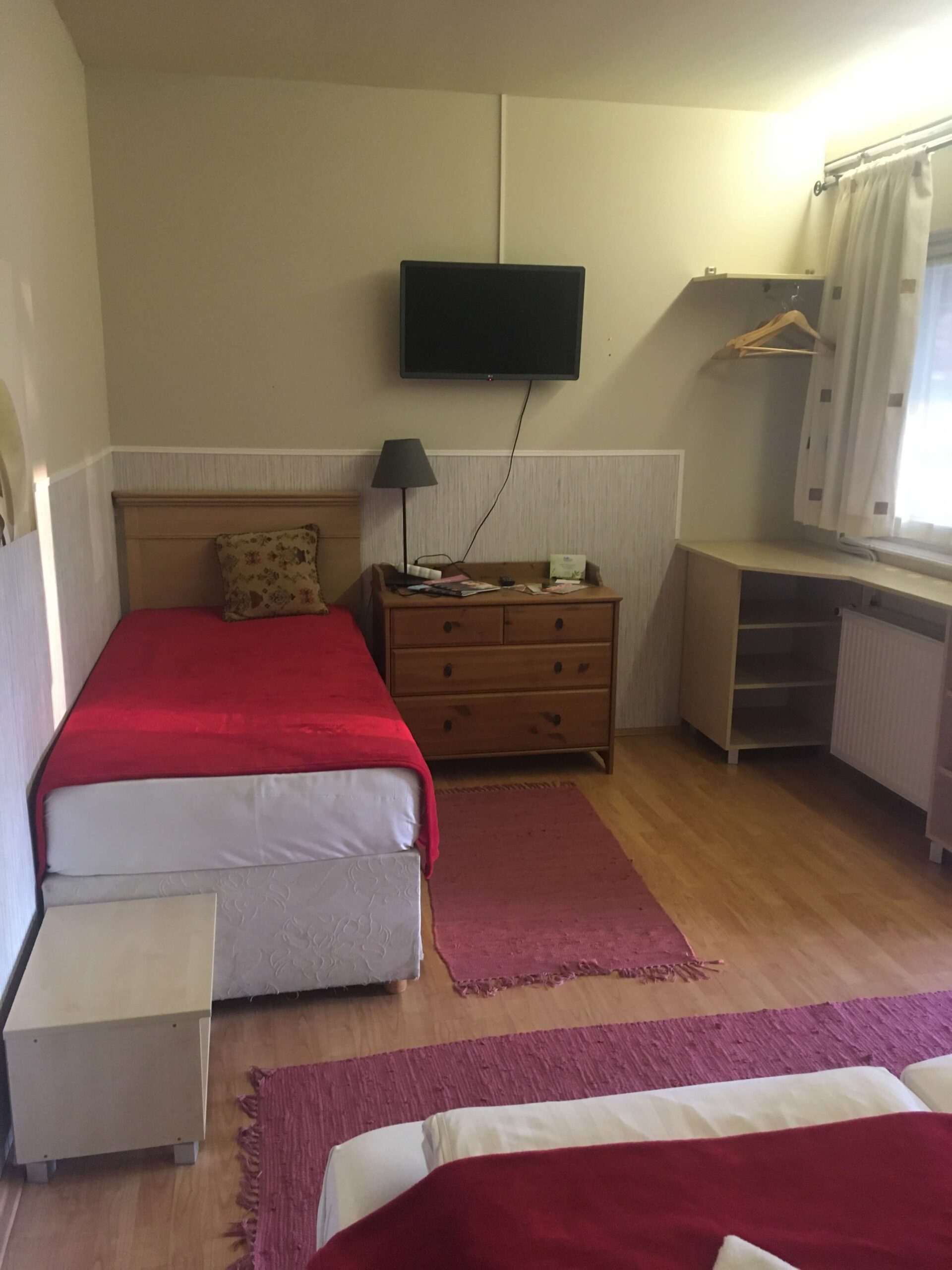 Vendégeink 1-3 ágyas, fürdőszobás szobákban szállhatnak meg, akár 11 szobáig, nagyobb létszám esetén pedig külső partnereinkkel biztosítunk további helyeket. Ingyenes kávé, tea és szóda fogyasztható, a közelben élelmiszerbolt található, és csomagolt szendvics vagy menü vacsora is rendelhető. Korlátozott számban zárt, kamerával megfigyelt parkolót is biztosítunk.